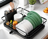 Dish Drying Rack for Kitchen Counter, Stainless Steel Sink Organization and Storage Essentials with Cutlery Holder, Home and Appartment Decor, 12''W X 15.5''L, Black