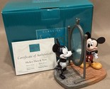 This Disney Classic WDCC Mickey Then Now Plane Crazy Runaway Brain 1226333 Statue features Mickey Mouse in two different versions from the animated shorts "Plane Crazy" and "Runaway Brain." Produced by Walt Disney Collectors Society, this figurine showcases Mickey's evolution over time and is a must-have for Disney fans and collectors alike.