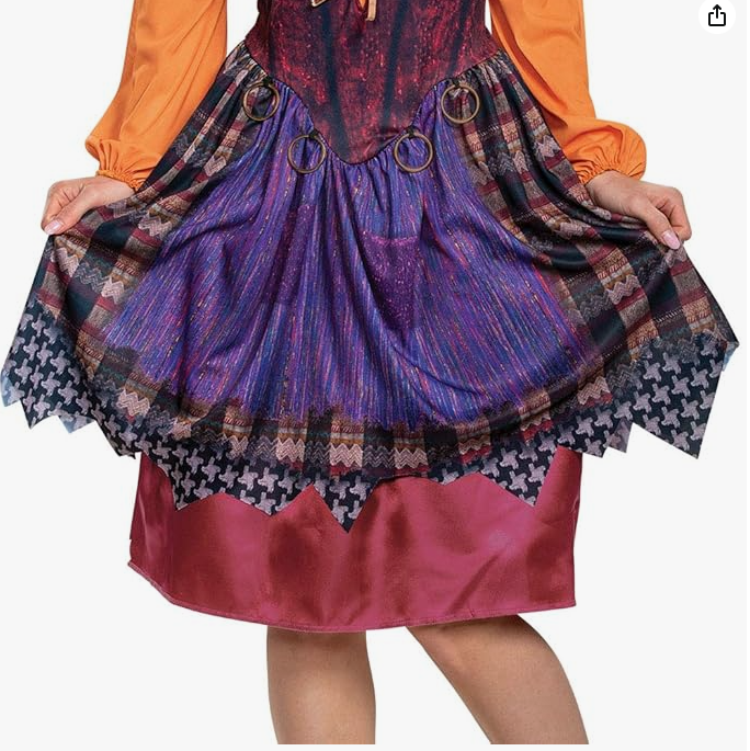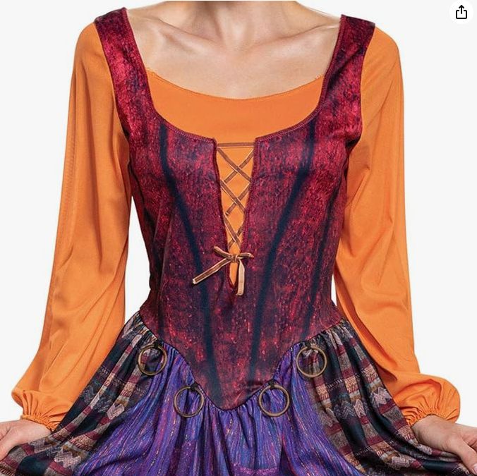 DETAILED COSTUME TO COMPLETE THE LOOK - Includes red velvet front bodice, orange sleeves, skirt and petticoat to make this Mary Sanderson costume true to the movie