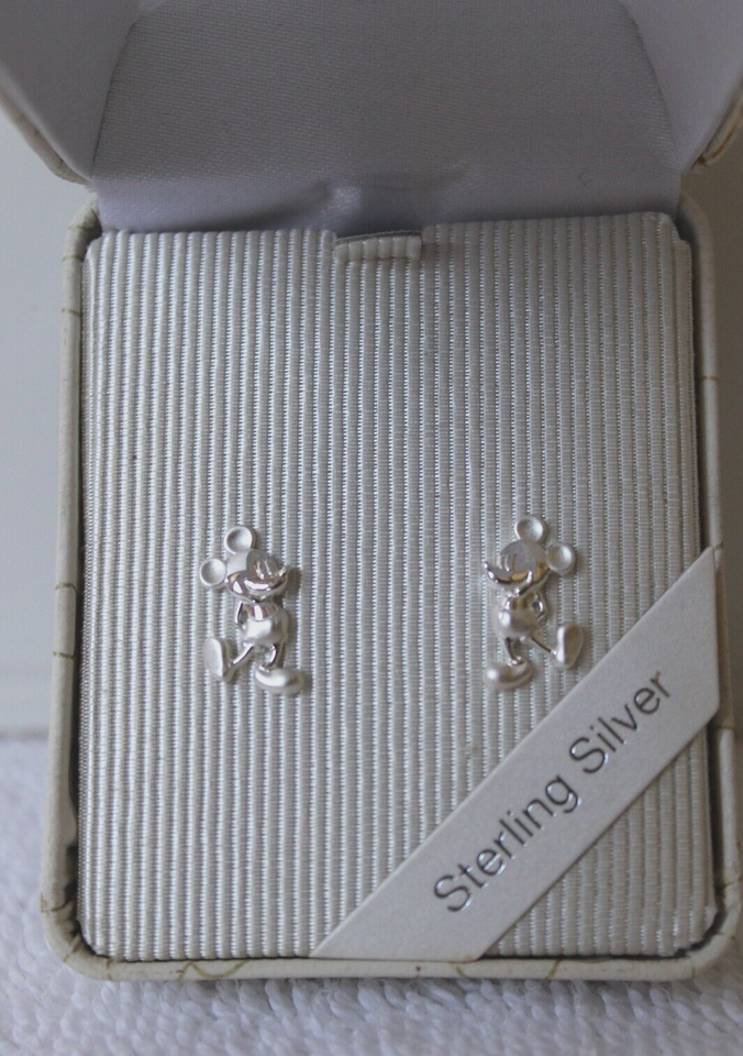 - Disney Mickey Mouse Sterling Silver Full Body Post Earrings New in Gift Box