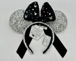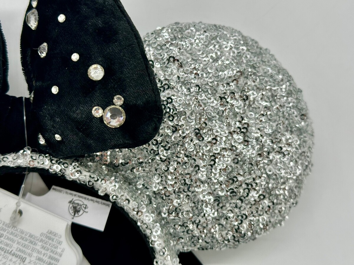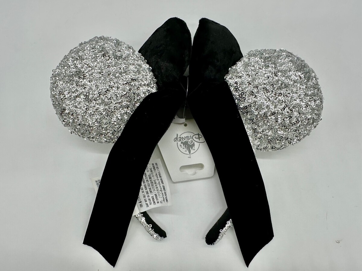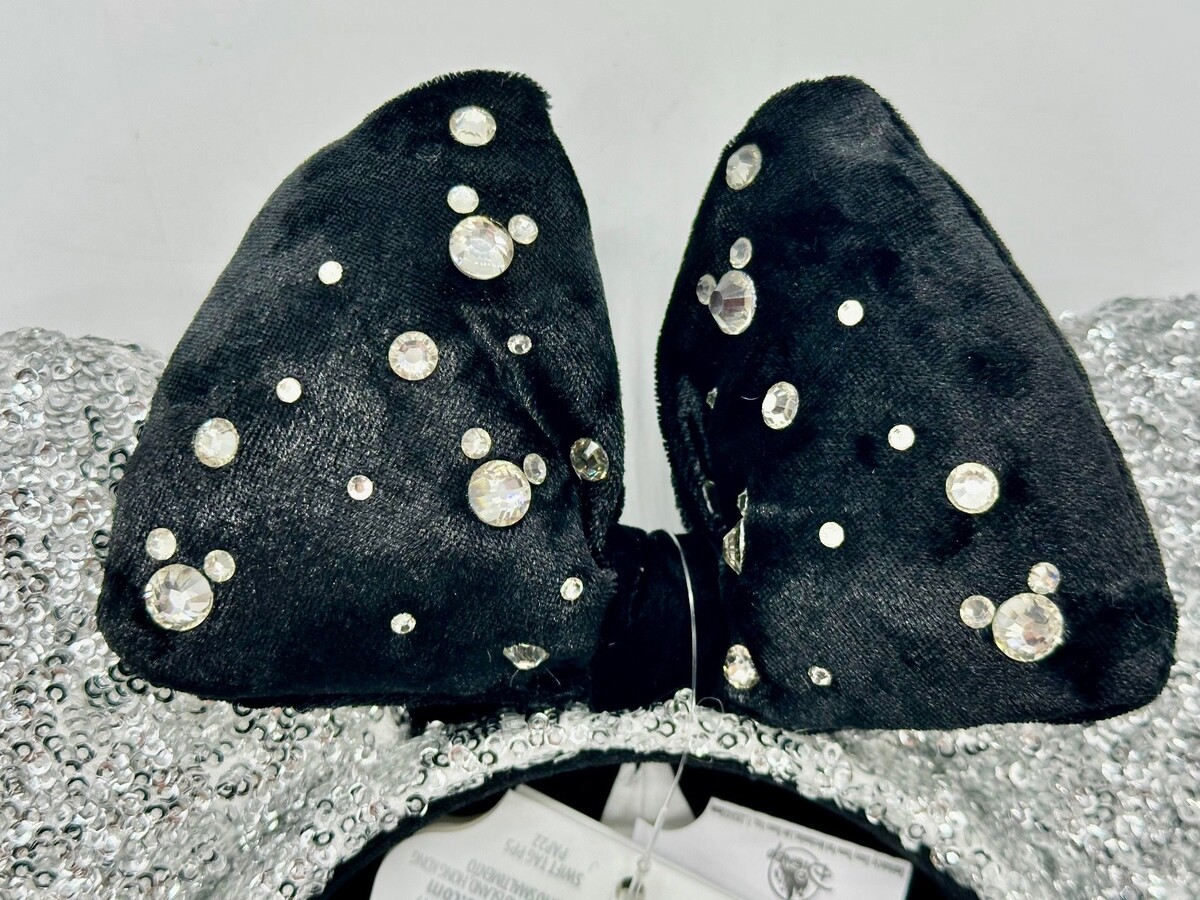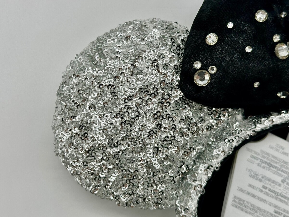 - Disney Parks Silver Sequin Minnie Ears Headband Black Velour Bow Rhinestones NWT