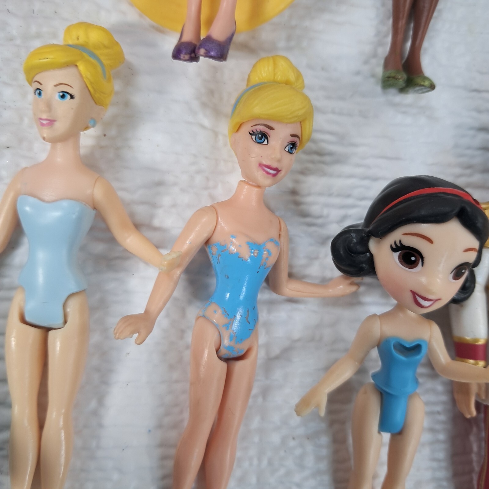 Includes dolls and dress shown. Most in very good condition, but one Cinderella doll has paint wear to her bodice as shown. See pics. Includes:
