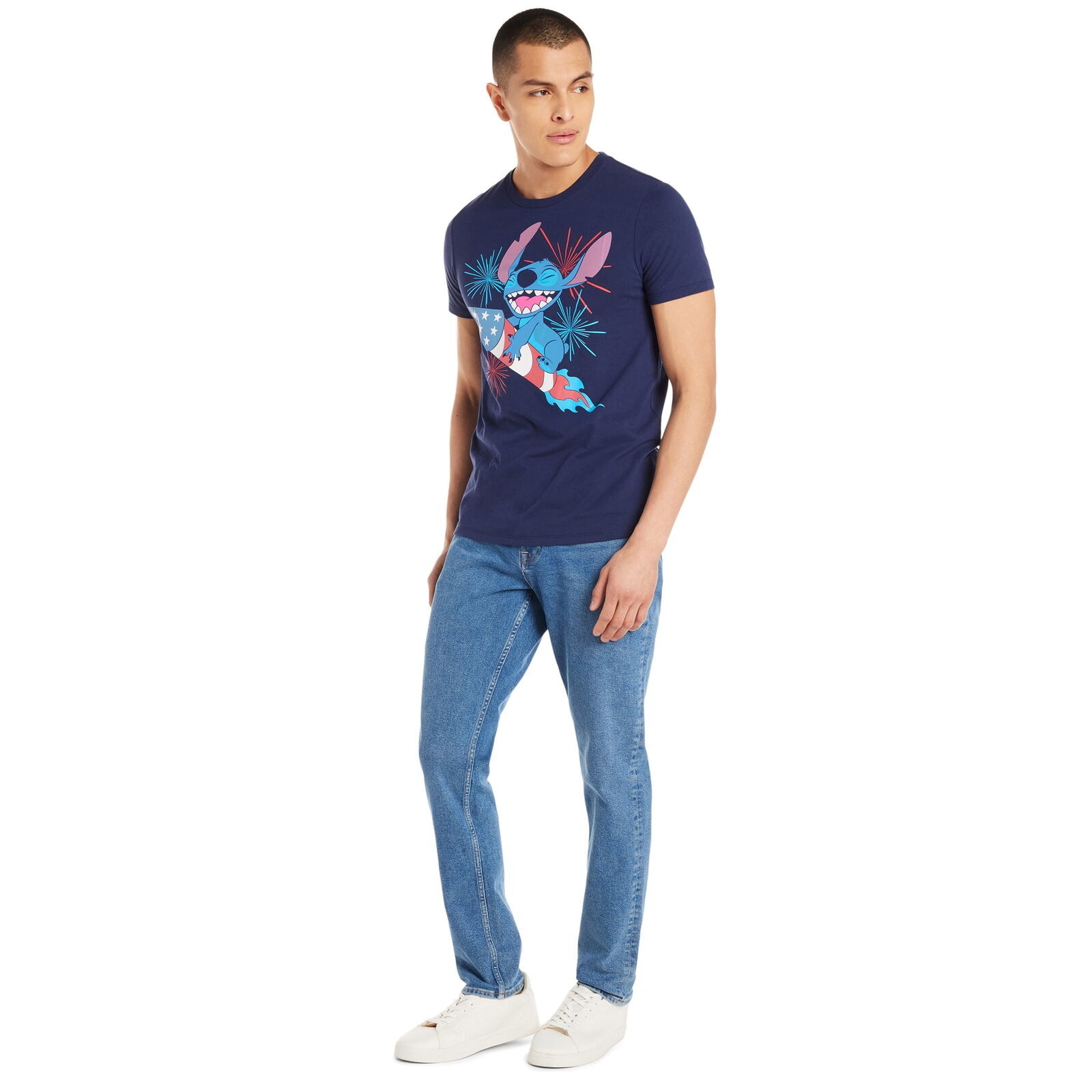 - Disney Stich Men's Fireworks Graphic T-Shirt, Size M (38-40) Color Navy