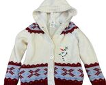 - Disney Store Kids Olaf Hooded Cardigan Sweater 5/6 Red & White Knit With Snowfla