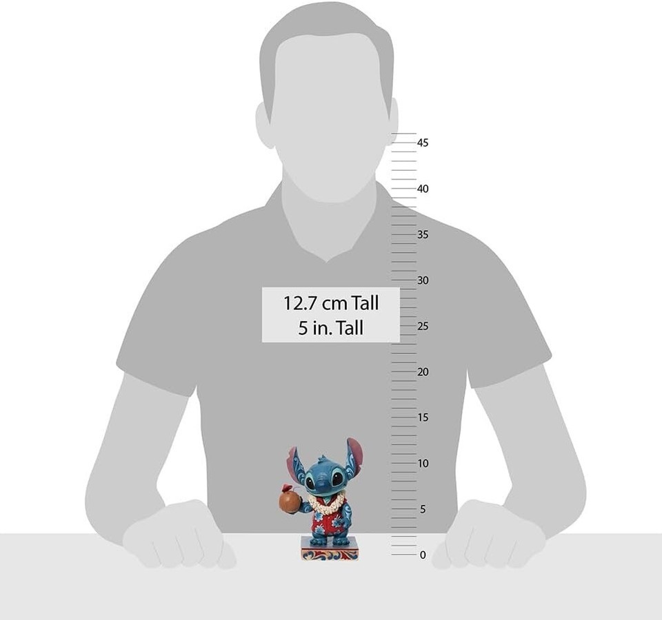 The Disney Traditions collection by Jim Shore combines the magic of Disney with the time-honored motifs of handcrafted folk art. Featuring accurate character details from beloved Disney animated films, each Jim Shore design celebrates these timeless classics with his signature mix of artistry, quality, and imagination. Experience the magic of your favorite Disney films like never before! Wearing a Hawaiian shirt and flower lei Disney's favorite alien celebrates the 20th anniversary of Lilo Stitch. Sipping from a coconut drink with a flower umbrella, Stitch has made himself a home on island of Kauai with his adopted Ohana.