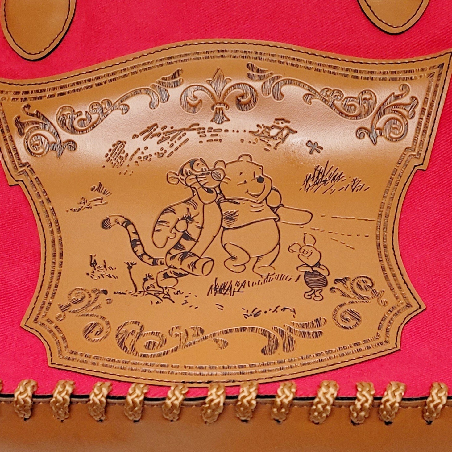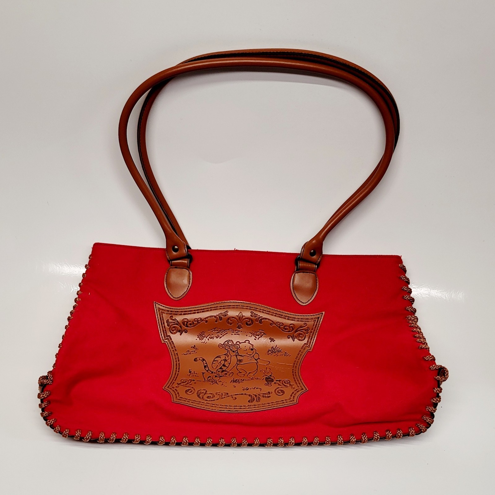 - Disney Winnie The Pooh Red Brown Handbag Tote Purse Leather Trim Tigger & Piglet