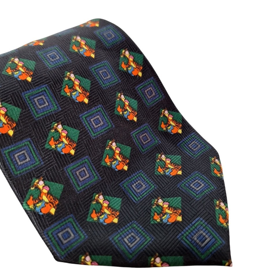 - Disney Winnie The Pooh Tigger Eating Honey Green Blue Squares Novelty Necktie
