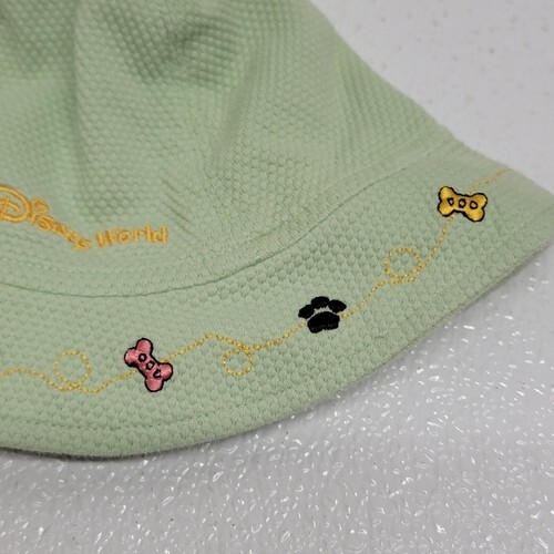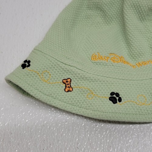 Disney World Baby Green Bucket Hat One Size Fits All Mickey Mouse Pluto Strap. Images show actual item that will ship.