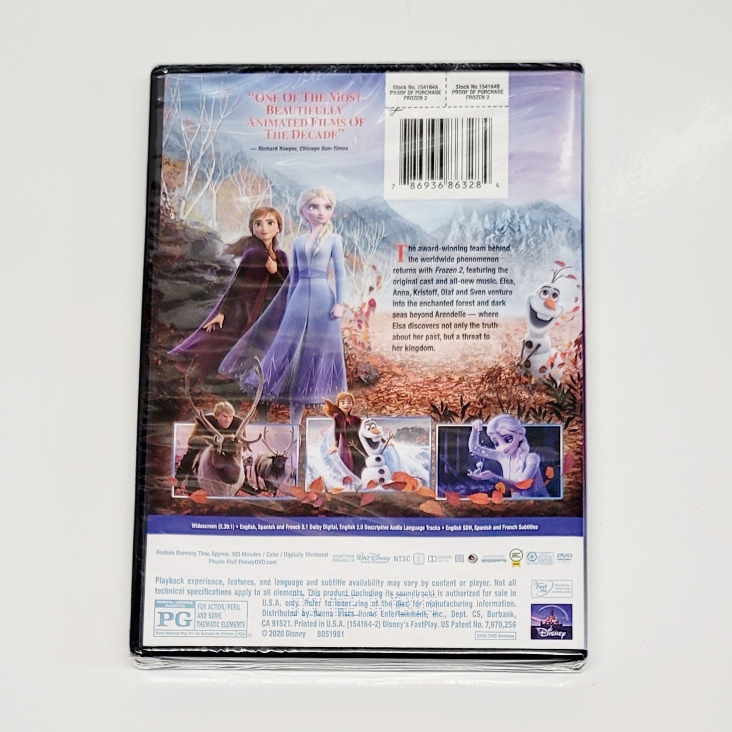 Experience the magic of Disney's Frozen II in stunning DVD format. This new release features a tall/DVD case and comes in English, French, and Spanish subtitle options. With a PG rating and a run time of 104 minutes, this family-friendly film is sure to delight fans of all ages. The animation/anime style and widescreen format bring the icy tale to life, making it a must-have for any Disney franchise collector.