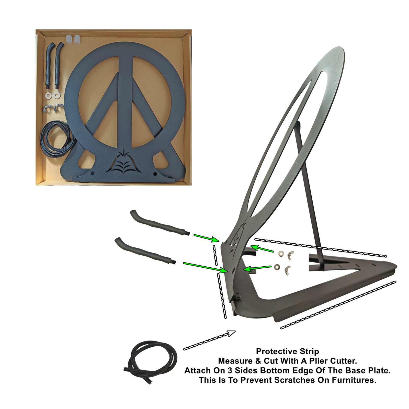 There is a supporting bar behind the holder, with 5 inserting gaps on the base plate, allowing 5 adjustable tilting angle to rest the Rock firmly. It is advice to lower the tilting angle if the Rock is heavier, this is to prevent the object from falling forward accidentally.