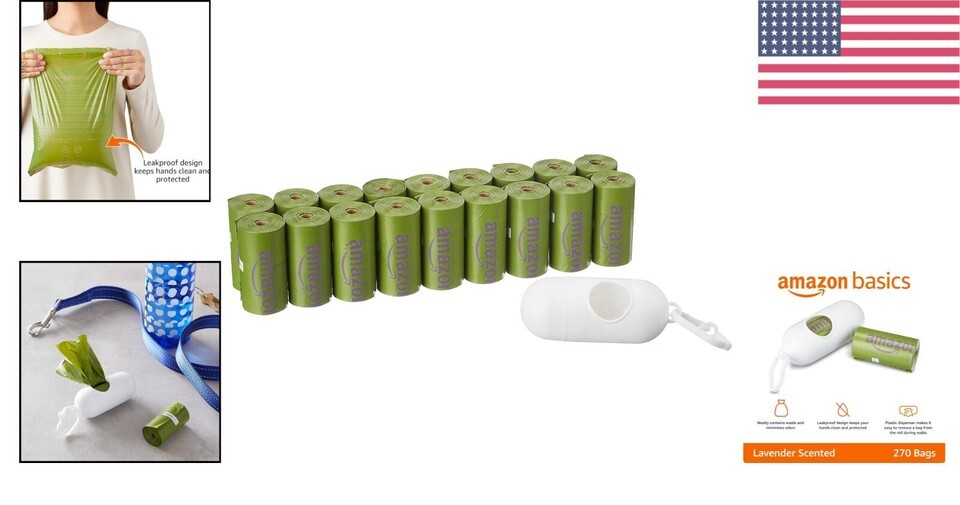 - Disposable Leakproof Dog Waste Bags - 270 Count with Lavender Scent & Clip