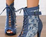- Distressed Denim Lace-Up Peep Toe Ankle Boots