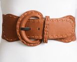 - Distressed Wide Stitch Elastic Belt Western Boho Chic Style Camel Brown