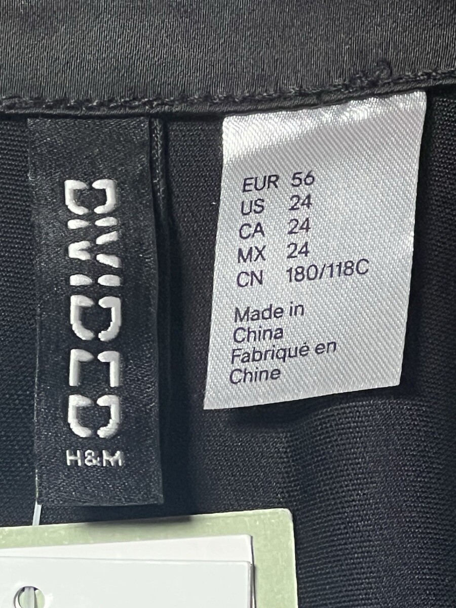 The product is a black long skirt from H M in size 24, designed specifically for plus-sized women. It features a side zipper for easy wear and is constructed from durable polyester material. The skirt's sleek design and versatile color make it a stylish and comfortable choice for any wardrobe. Perfect for adding a touch of sophistication to any outfit.