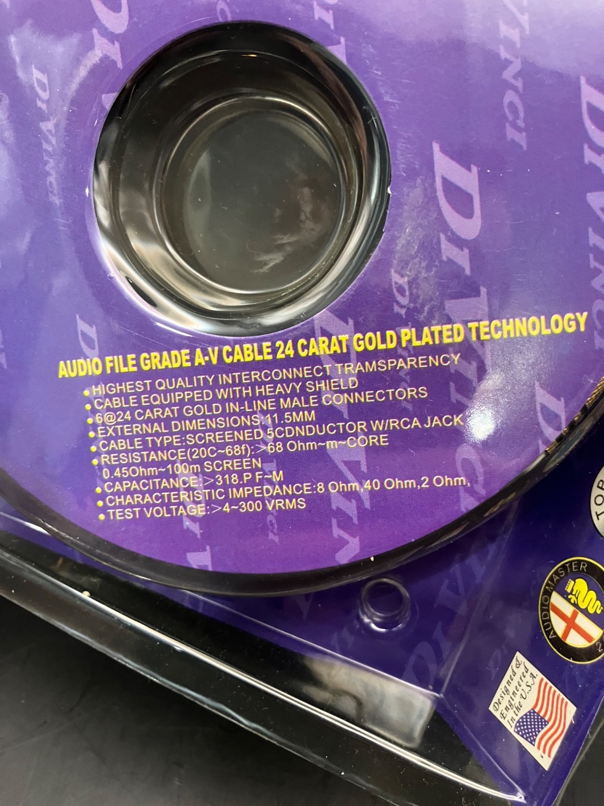 Divinci Innovative Sound Bass Digital Cable Gold Plated Audio AV. 6? cable for high quality sound. Tested and works.
