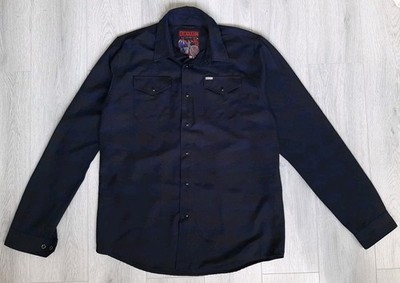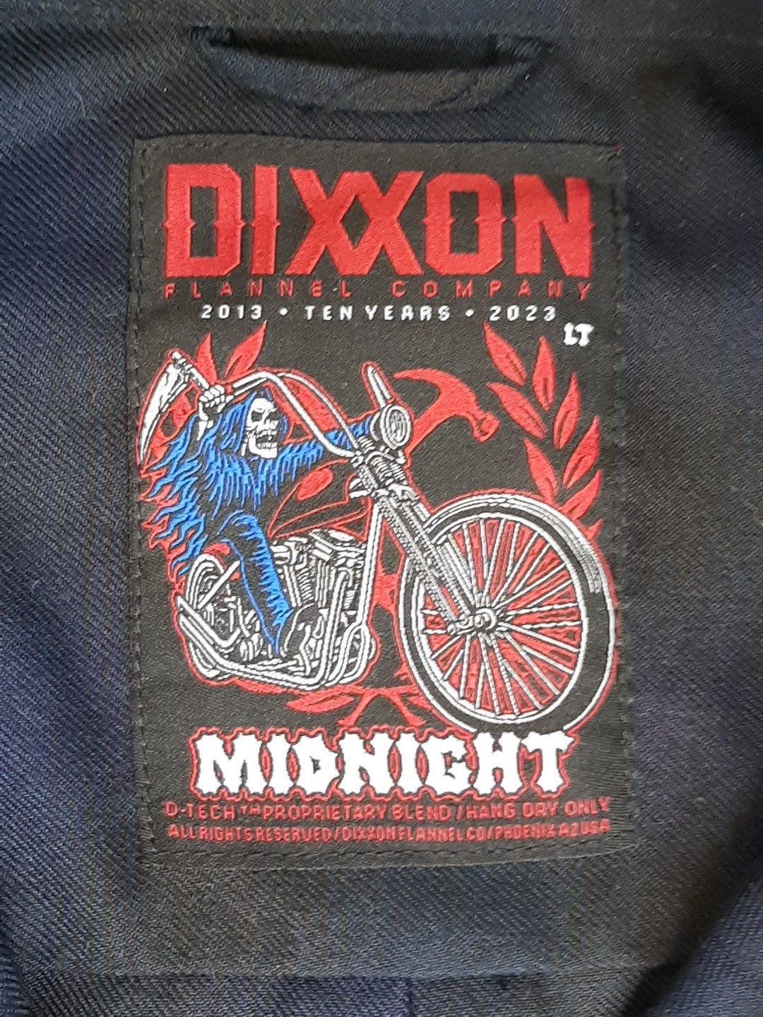 Dixxon Flannel 'Midnight 10Yr' Size Large Tall Black Pearl Snap Black and Blue Plaid Shirt.