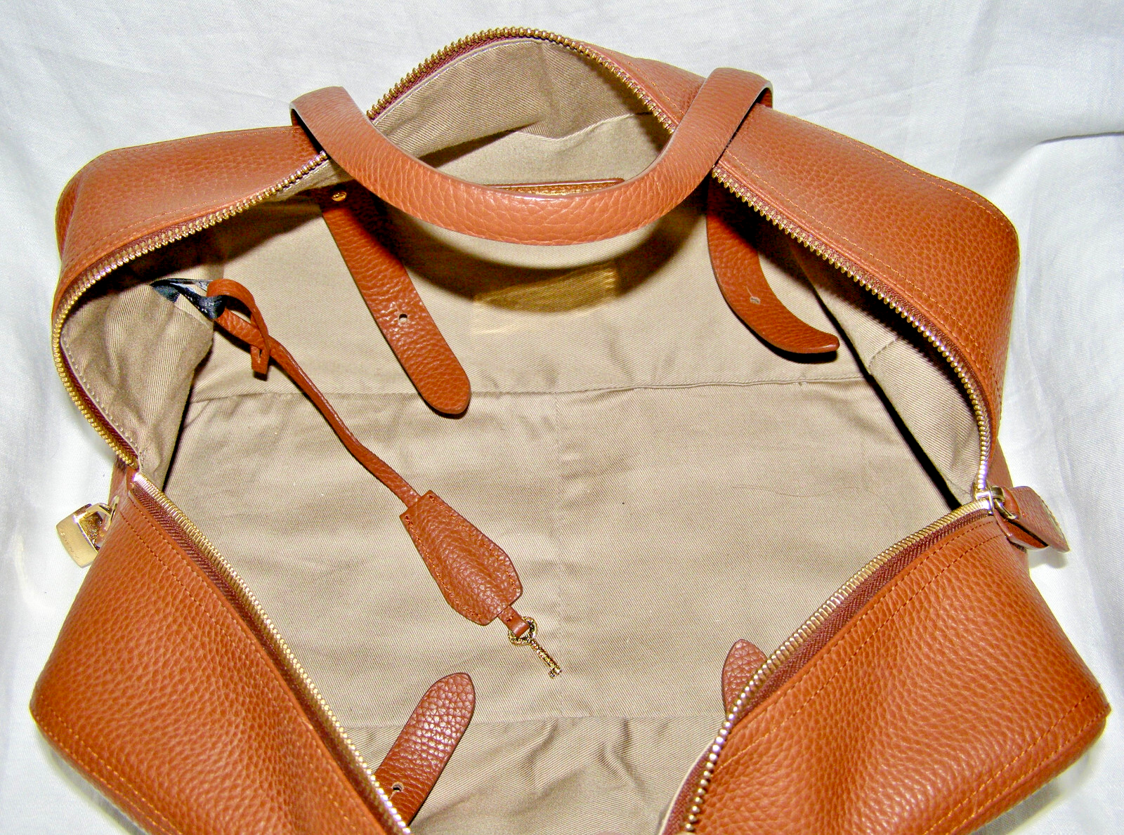 OVERNIGHT BAG w/ PEBBLE TEXTURE FINISH + BRASS LOCK AND KEY |