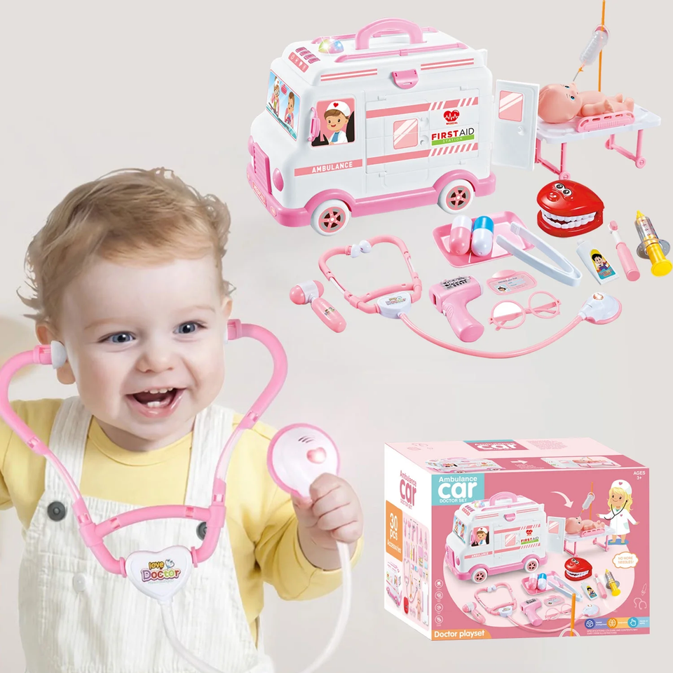 - Doctor Kit for Kids, 30Pcs Pretend Play Doctor Kit with Ambulance Toy & Baby Dol
