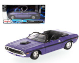 Maisto 1/24 Dodge Challenger R/T Purple Diecast Model Car ? a brand-new, officially licensed replica of the legendary 1970 Dodge Challenger R/T in bold purple. This collectible is crafted in precise 1/24 scale to deliver authentic proportions and a showroom-ready finish for display shelves, office desks, or trophy collections.