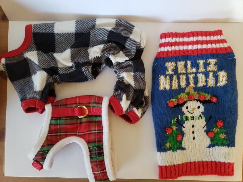 XS Dog Outfit Lot of 6 Hot Dog Ugly Christmas Sweater Santa (2-piece) Lumberjack Pajama Harness