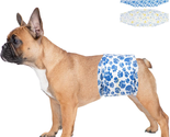 2 STYLISH DESIGNS: Dog diapers male with 2 stylish designs, blue dog paw pattern and cute cartoon dog pattern fit waist size 12-19 inches, weight about 6-20 lb. Please measure your dog's waist in front of the back legs for a better fit