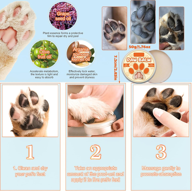 ?Microfiber Towel Foot Cream Stainless Steel Nail Clippers ?:After cleaning, wipe dry with a towel and apply paw protection cream.This foot cream is very moisturizing and can effectively alleviate dry and cracked pet skin when applied to claws to nourish pet paws to prevent dryness and cracking.Nail Clippers a nail file is included in the packaging, allowing you to polish sharp nails to perfection, suitable for large, medium, and small dogs cats.