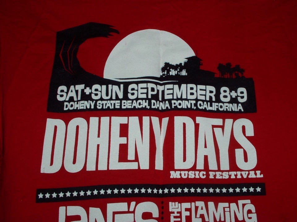 This is a concert t shirt entitled, "Doheny Days September 8 + 9 Doheny State Beach, Dana Point, California". Inside Front collar reads: Campus Authentic. A terrific item for the fan or collector.