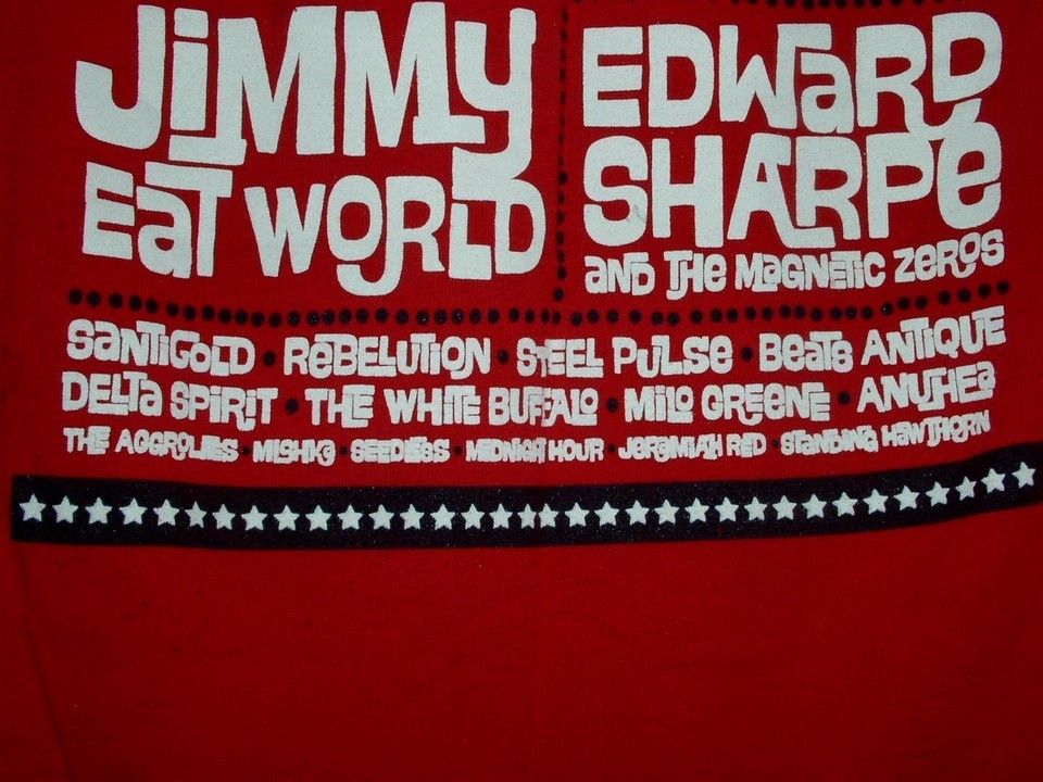 Acts listed on the back are: Jane's Addiction, The Flaming Lips, Jimmy Eat World, Edward Sharpe and the Magnetic Zeros, Santigold, Rebelution, Steel Pulse, Beats Antique, Delta Spirit, The White Buffalo, Milo Greene, Anuhea, The Aggrolites, Mishka, Seedless, Midnight Hour, Jeremiah Red, Standing Hawthorn.
