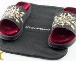 Dolce & Gabbana Velours Bout Ouvert Pantoufles W/Broderie Boite & Pochette