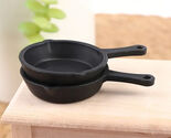 - Dollhouse Frying Pan Vintage Cast Iron Style Resin 2 Piece Set 1/6 Scale 1.5"
