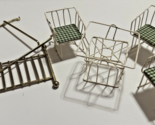 - Dollhouse Furniture White Wire Table & 3 Chairs Plaid Green/White Vintage