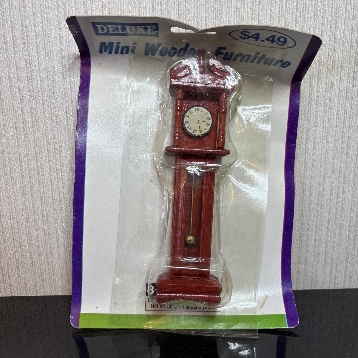 - Dollhouse Grandfather Clock Wooden Doll Furniture Vintage Regency Rosewood