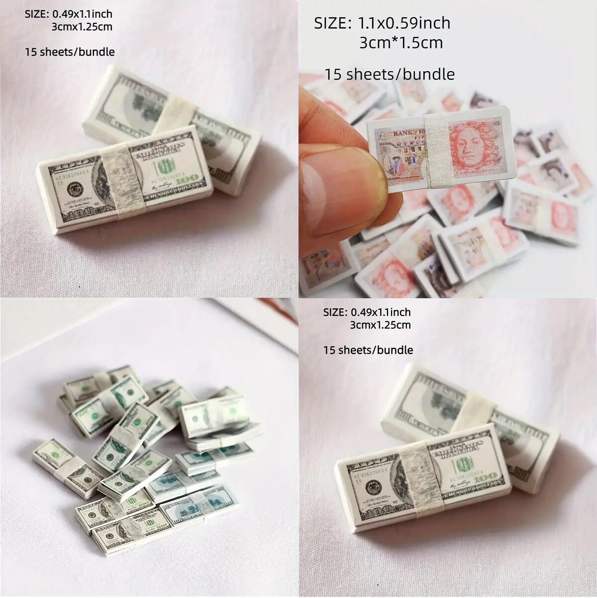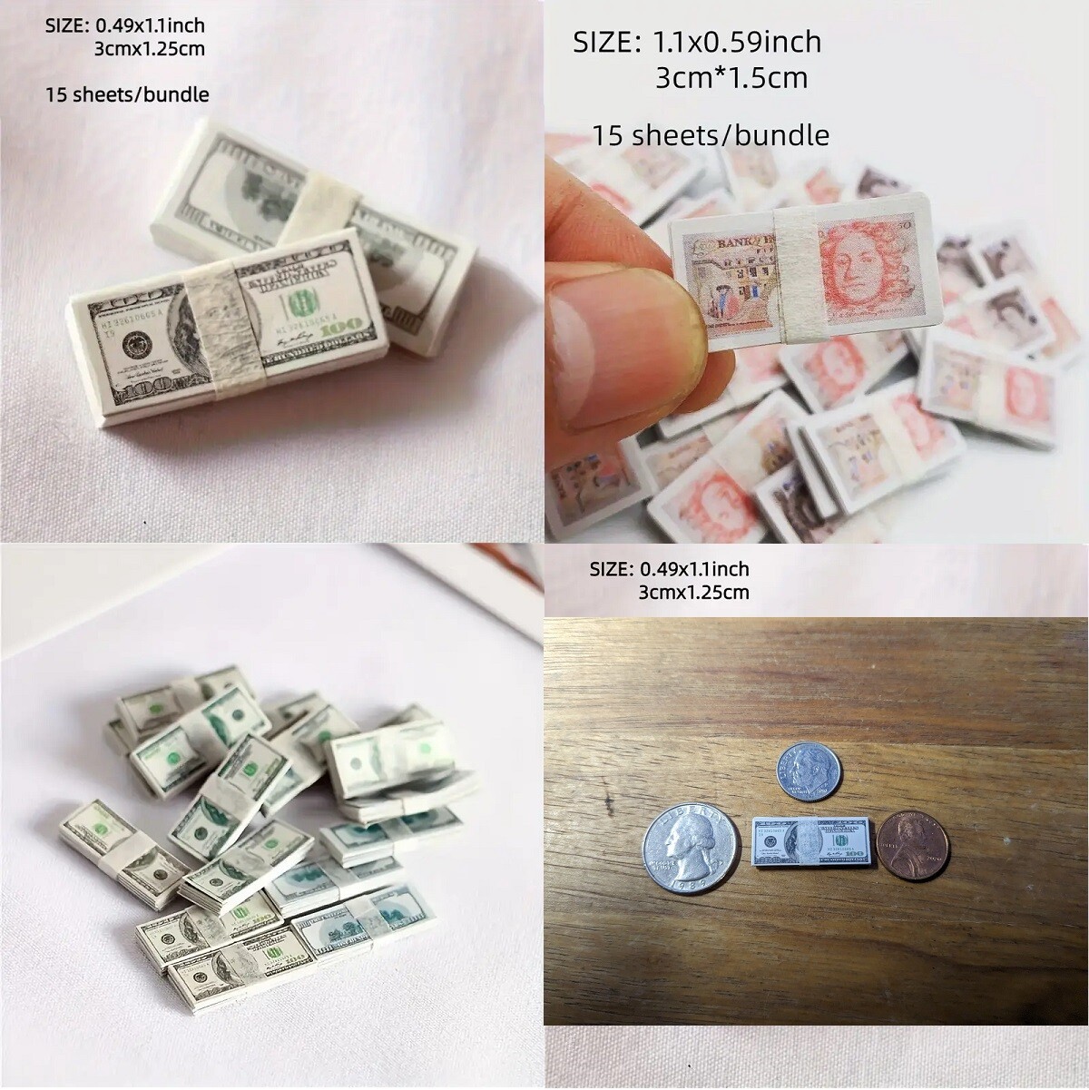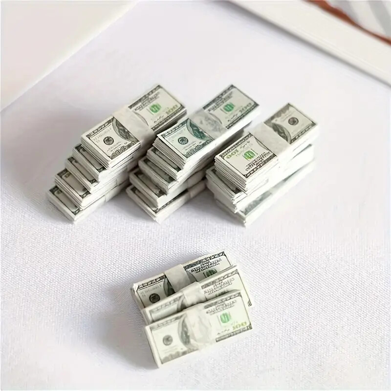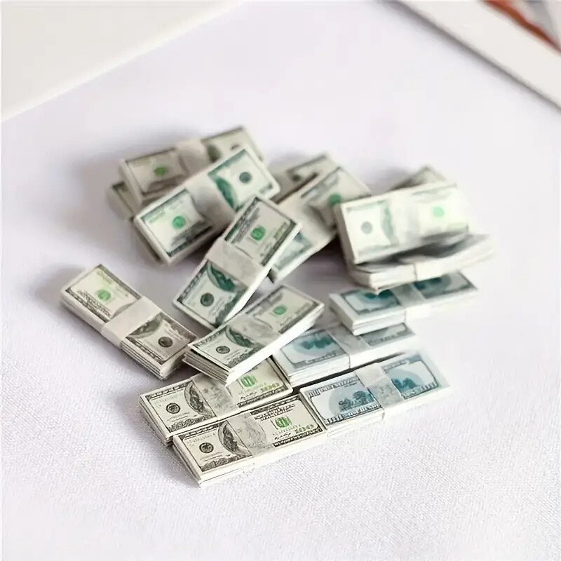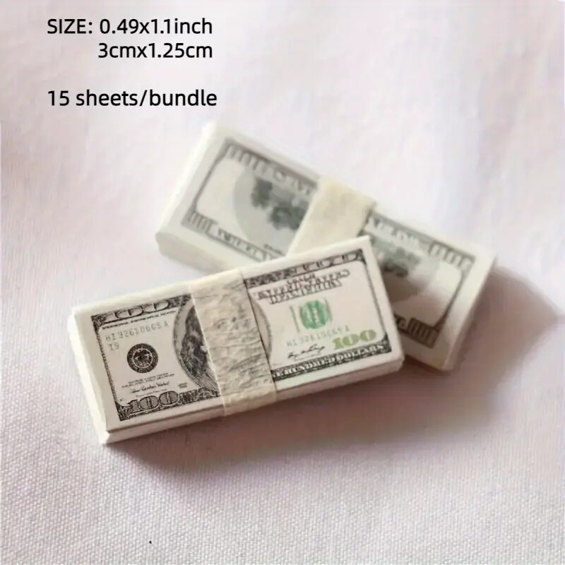 - Dollhouse Miniature $100 Bills Play Money 1/6 scale 1/2x1" 15 Pc. Bundles