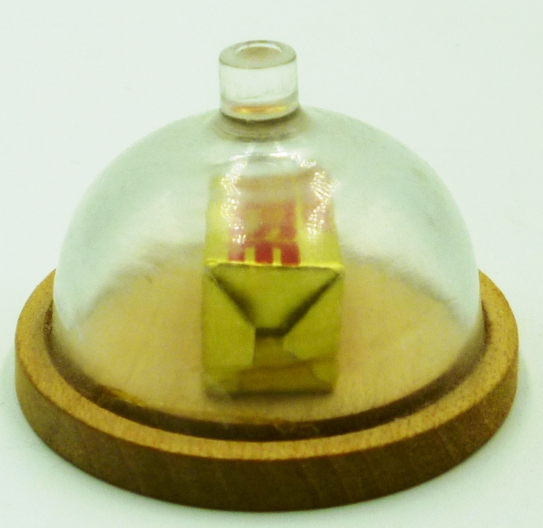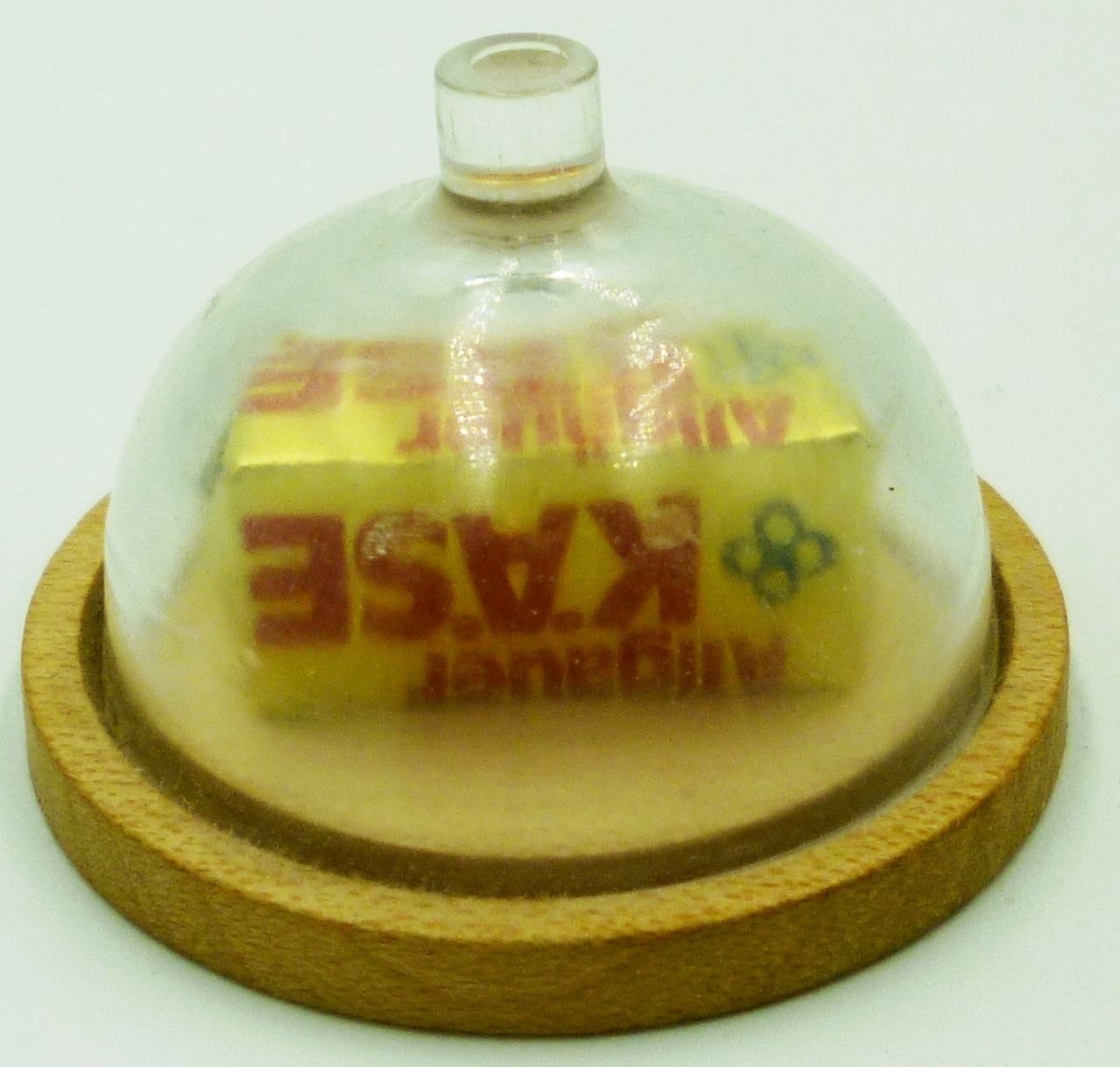 - DOLLHOUSE MINIATURE CHEESE BOARD WITH DOME LID AND BLOCK OF ALLGAUER KASE
