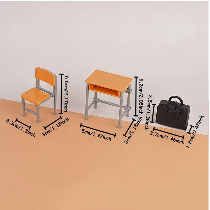 Dollhouse Schoolhose Desk Set Desk Chair and Bookbag 1 Set 3 Pc