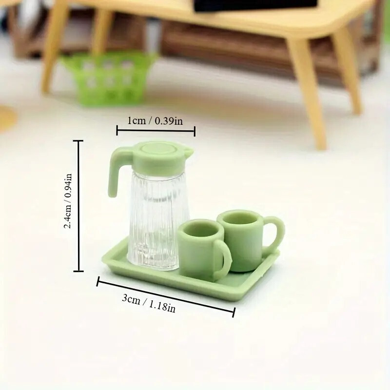 - Dollhouse Water Glass and Pitcher 5 Piece Set 1/12 Scale