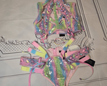 Dolls Kill Harness Rainbow Sequin Rave Festival Lace Up Top - M