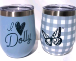 - Dolly Blue butterfly Stainless Stemless Wine Tumbler 2X DG Exclusive 12 oz ea