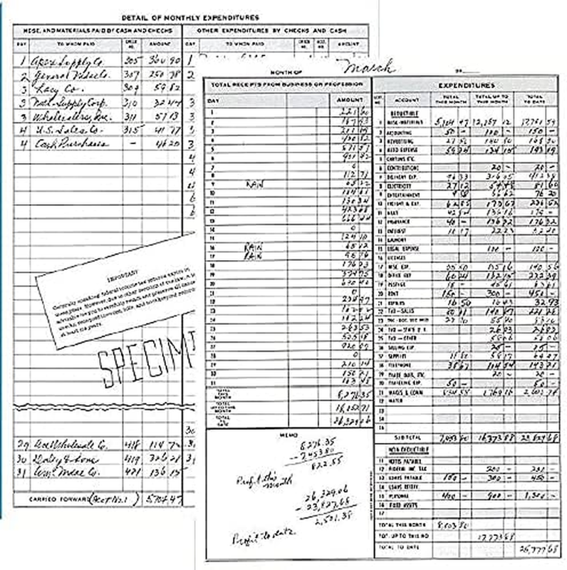 The perfect cash record keeping system for small and home-based businesses. Features a calendar of important dates and record of cash received and paid out, net profit and net worth. Filled in specimen page offers a convenient guideline. Includes payroll section for up to six employees. 4" columns. Wirebound vinyl cover. Undateda??start anytime; good for one year. Unnumbered pages.
