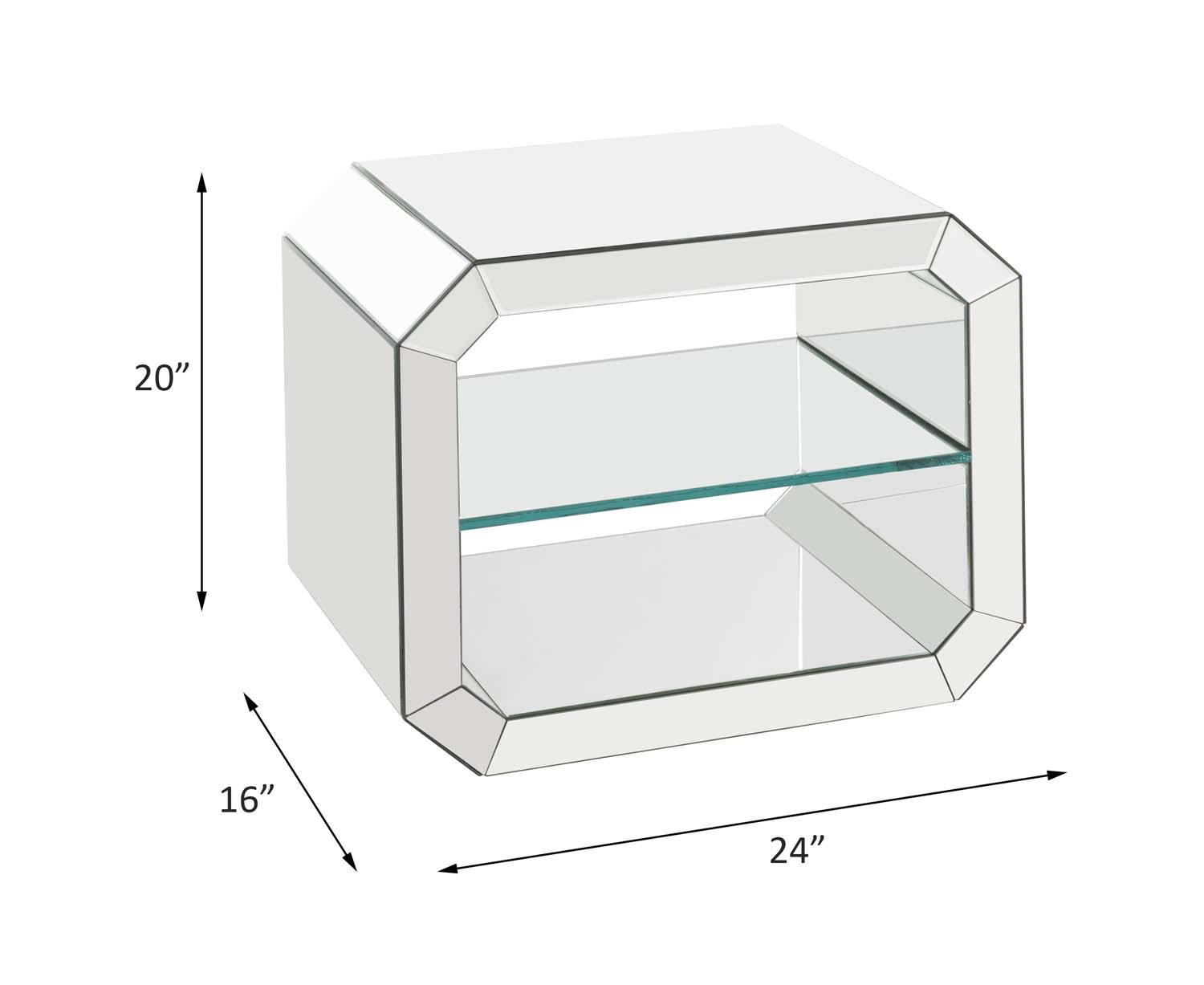 Features: Rectangular Accent Table 1 Glass Shelf Tempered Glass Mirrored Glass Panels Timeless design that complements any dcor Set Includes: One (1) Accent Table