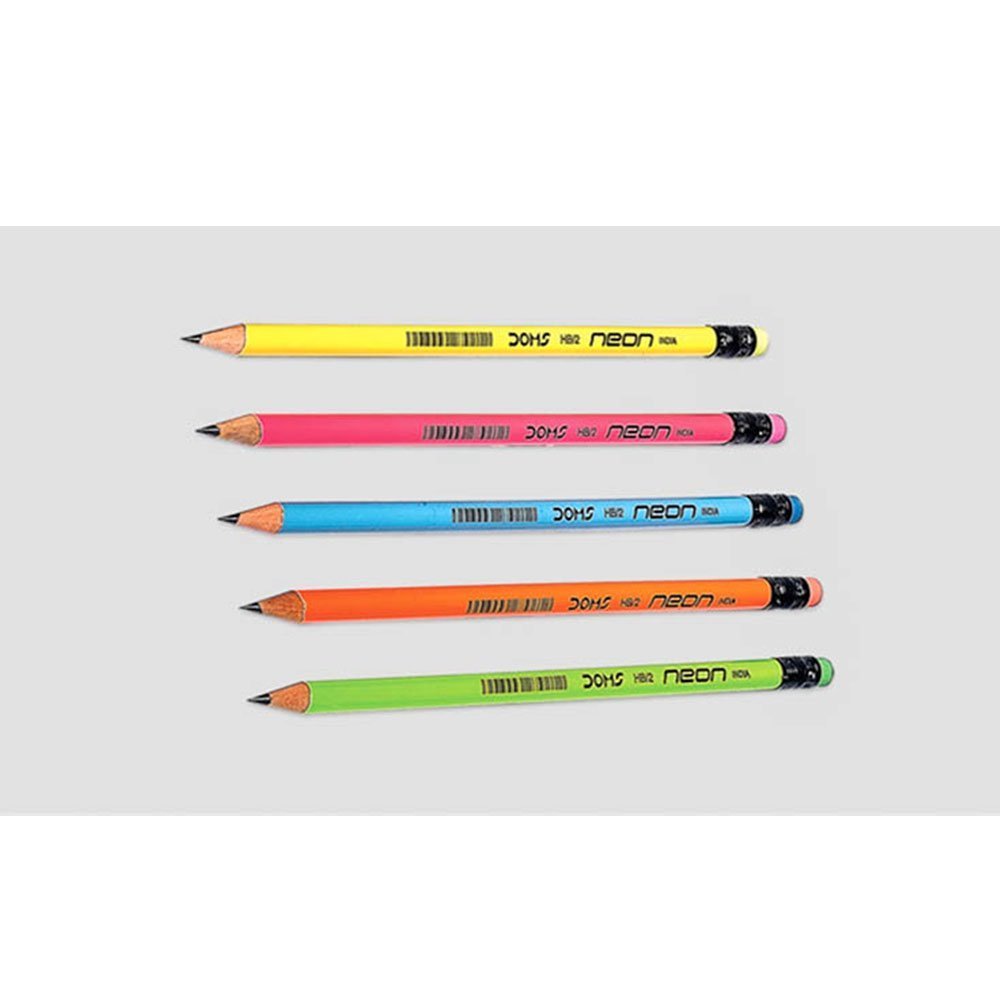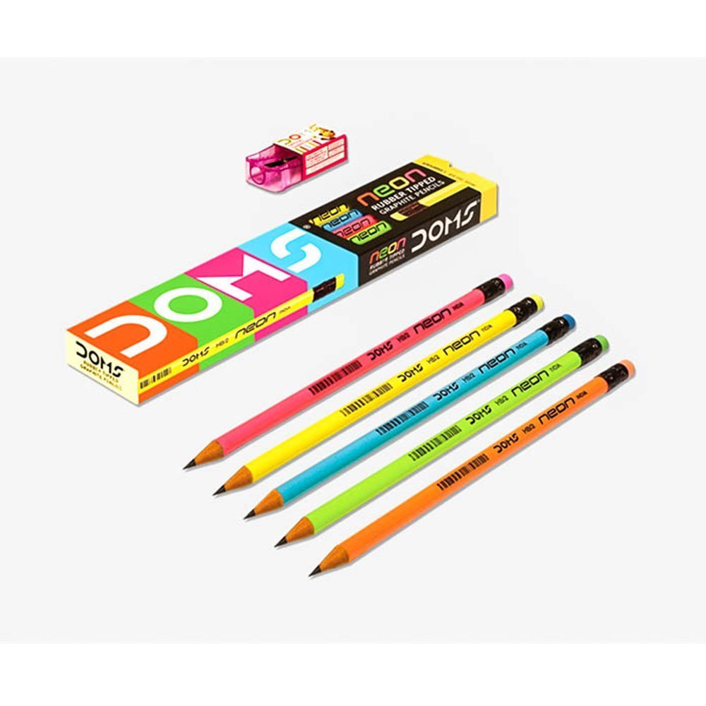 - Doms - Rubber Tipped Graphite Pencils in Neon Colors with Free Sharpner (10 Penc