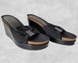 Donald J Pliner Black Slip On Wedge Sandal-Fabric & Patent Leather-Women's 7.5M