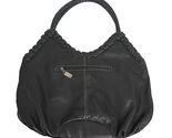- Donald J Pliner Braided Woven Trim Large Hobo Bag Black Leather Boho Flaws
