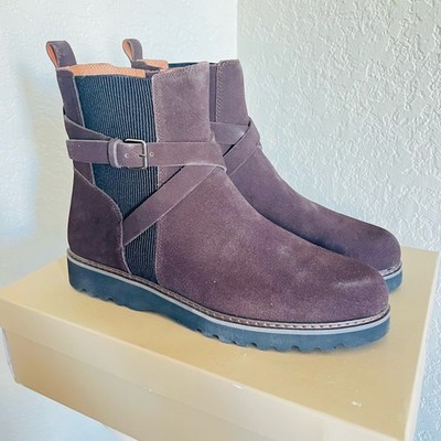- DONALD PLINER Buckled Lug Sole Bootie, Suede Leather, Dark Brown, Size 12, NWT