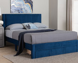 - Donnica Modern Navy Blue Pleated Velvet Queen Size Storage Bed