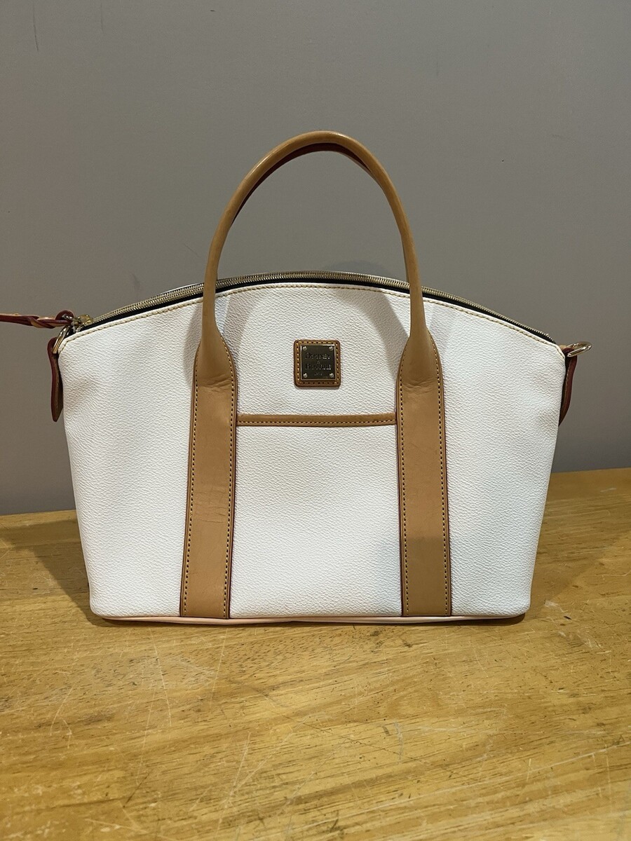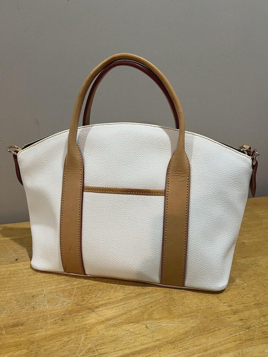 - Dooney & Bourke White Madeline Satchel Bag with Leather Trim No Strap Included