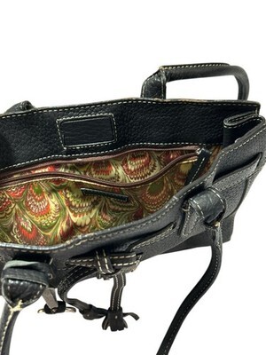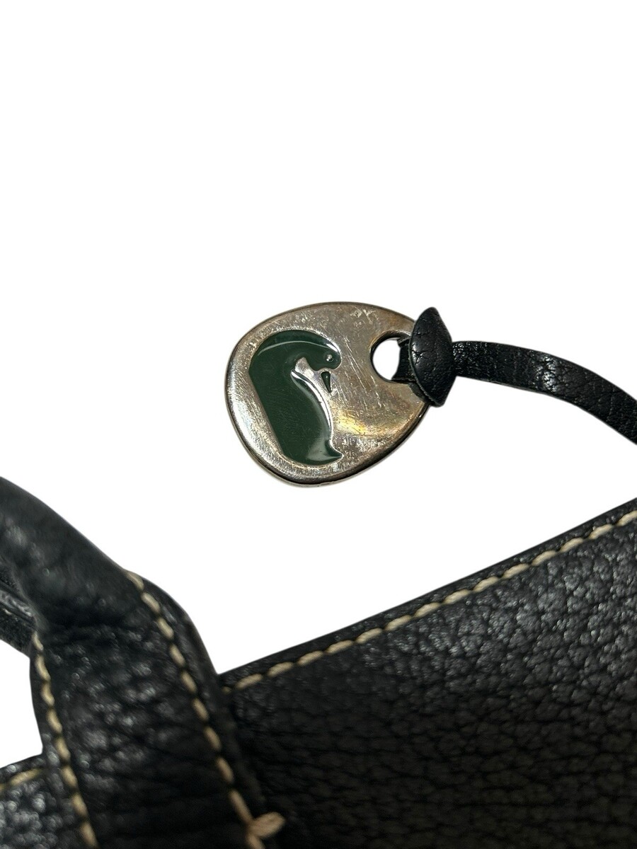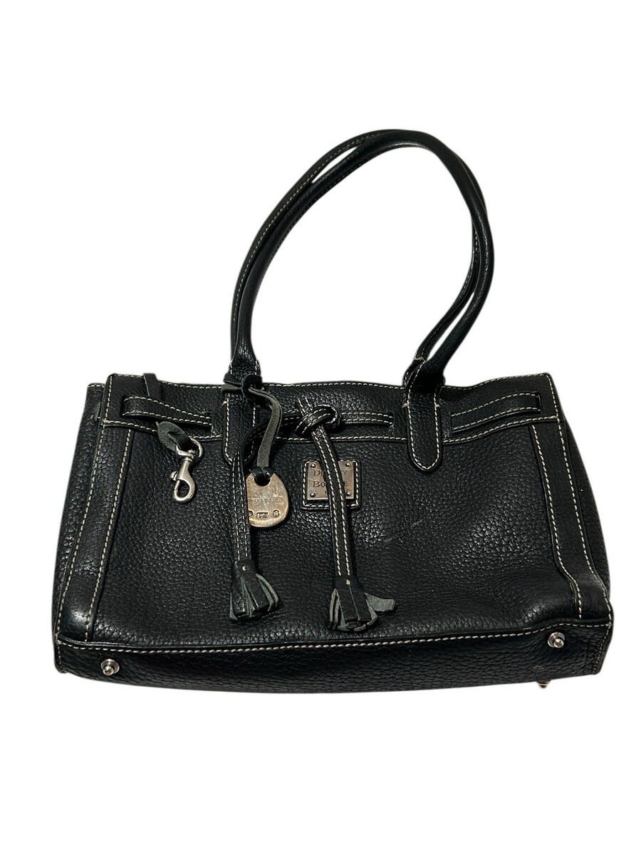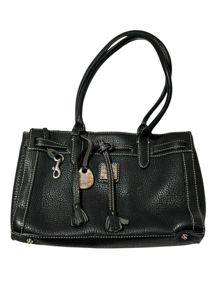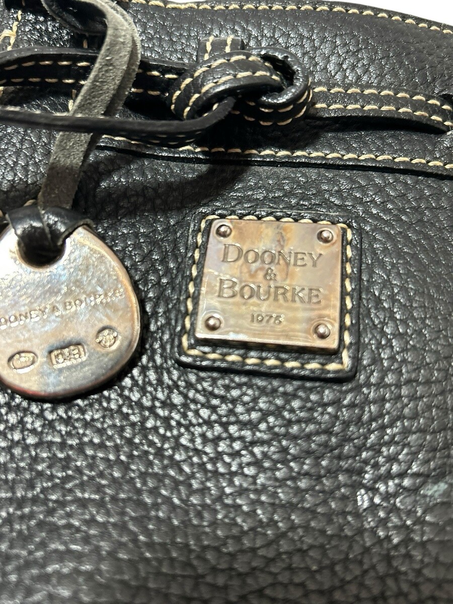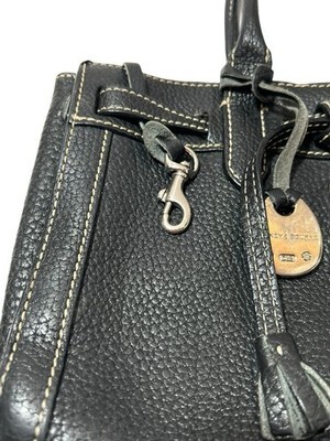 - Dooney & Bourke black pebbled leather Drawstring Tassel handbag