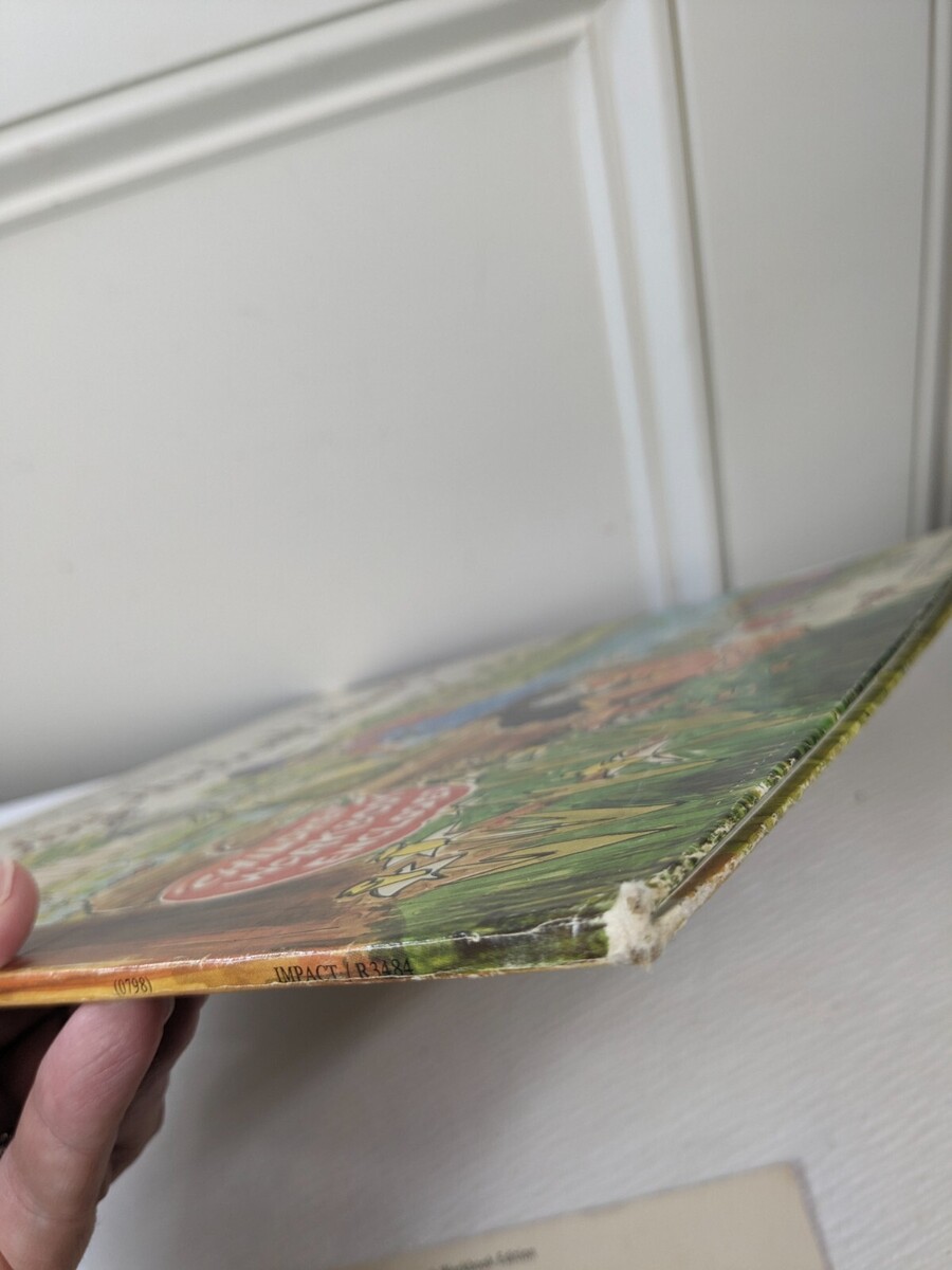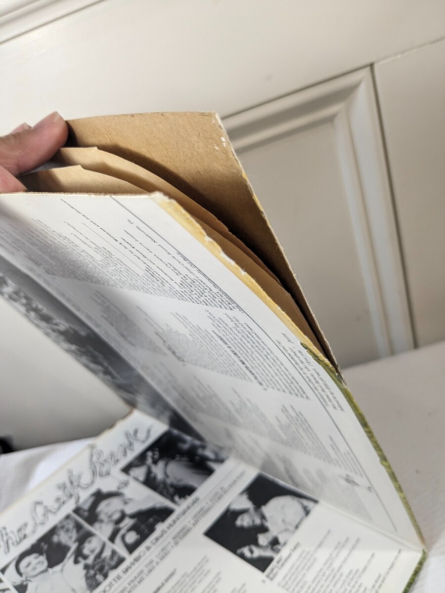 Cover for vinyl in fair condition: Has tears/wear/marks/stains as shown. Vinyl itself is in good clean condition. Book has wear also but pages are clean.