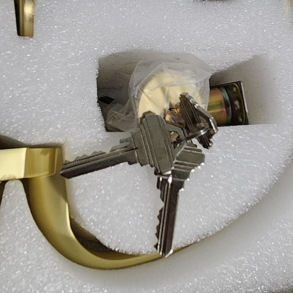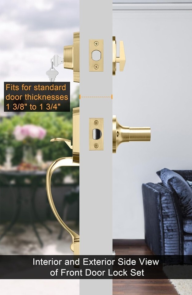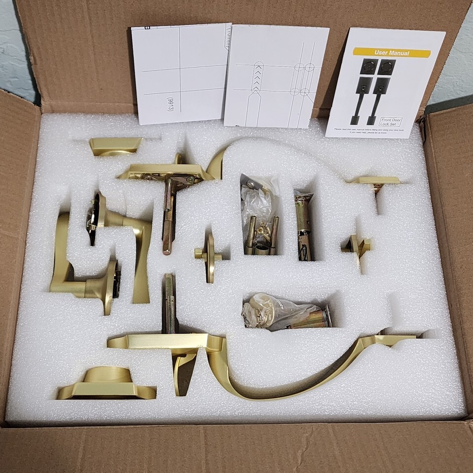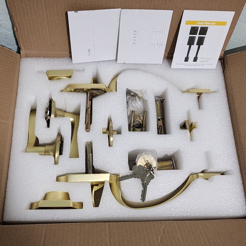 ?????????? ???????????? - Straightfoward installation with pre-existing hole requiring only a screwdriver. All front door hardware are included in the package. Locks from the inside with a turn button and unlocks from the outside with the keys. Keep in mind when installing you have to line everything up perfectly.