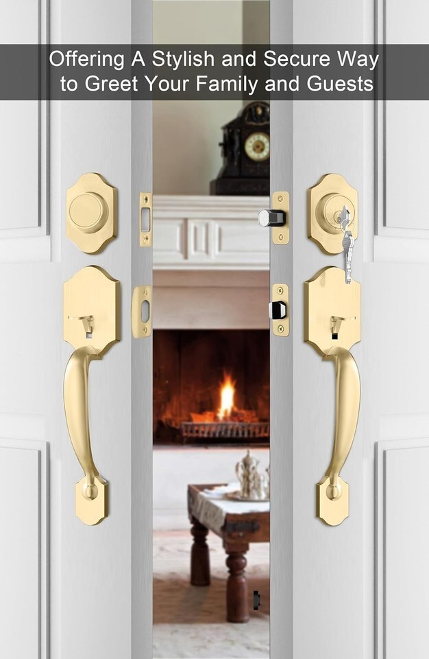 - Double Front Door Lock Set, Gold Double Door Handlewith Dummy, Double Classic...